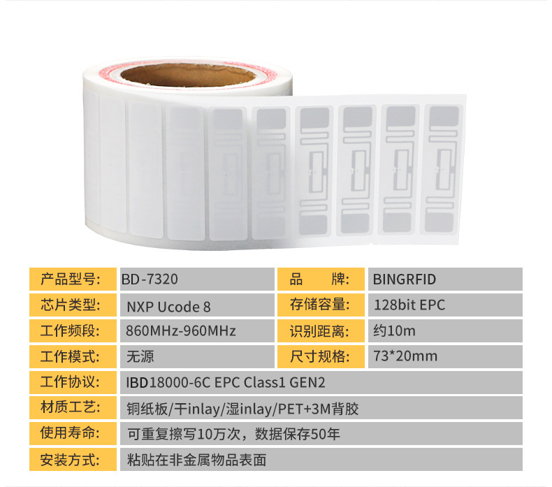 应用领域:广泛用于物流仓储、服装零售、资产管理、门禁防盗、医疗设备、智能制造、防伪追溯等。