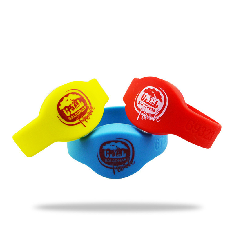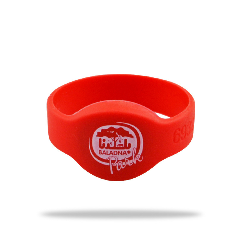 产品名称:FM11RF08芯片硅胶手环,采用柔软环保硅胶材料模压成型,具备防水、防汗、耐磨耐高温特性,适用于高频识别与门禁管理场景。